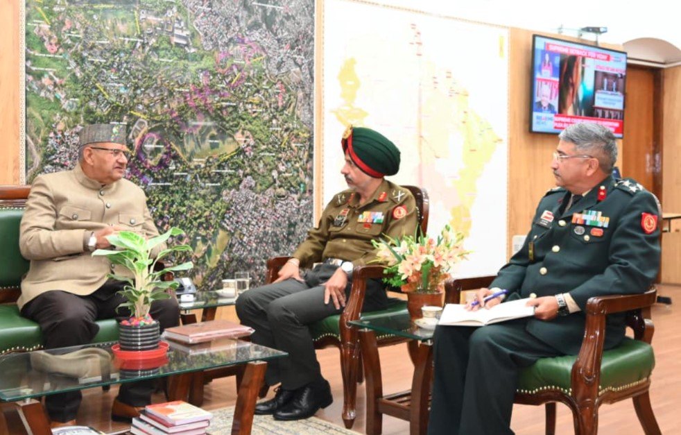 देहरादून। सैनिक कल्याण मंत्री गणेश जोशी ने आज गढ़ी कैंट स्थित उत्तराखंड सब एरिया देहरादून में जीओसी मेजर जनरल एमपीएस गिल एवं डिप्टी जीओसी बिग्रेडियर आरएस थापा से भेंट कर उन्हें थल सेना दिवस की बधाई एवं शुभकामनाएं दीं।