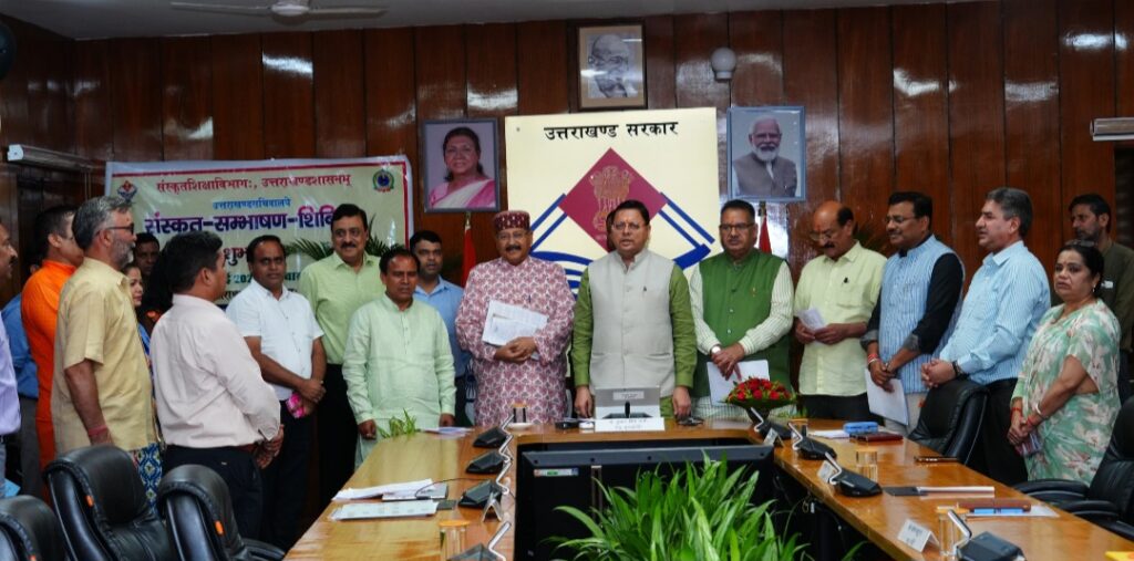 देहरादून। राज्य की द्वितीय राजभाषा संस्कृत के संरक्षण-संवर्धन एवं संस्कृत को जनभाषा बनाने के उद्देश्य से उत्तराखंड सचिवालय परिसर में ‘संस्कृत संभाषण शिविर’ का आयोजन किया जा रहा है। जिसका शुभारम्भ कैबिनेट के बाद मुख्यमंत्री श्री पुष्कर सिंह धामी के द्वारा सभी कैबिनेट मंत्रियों एवं मुख्य सचिव की उपस्थिति में किया गया।