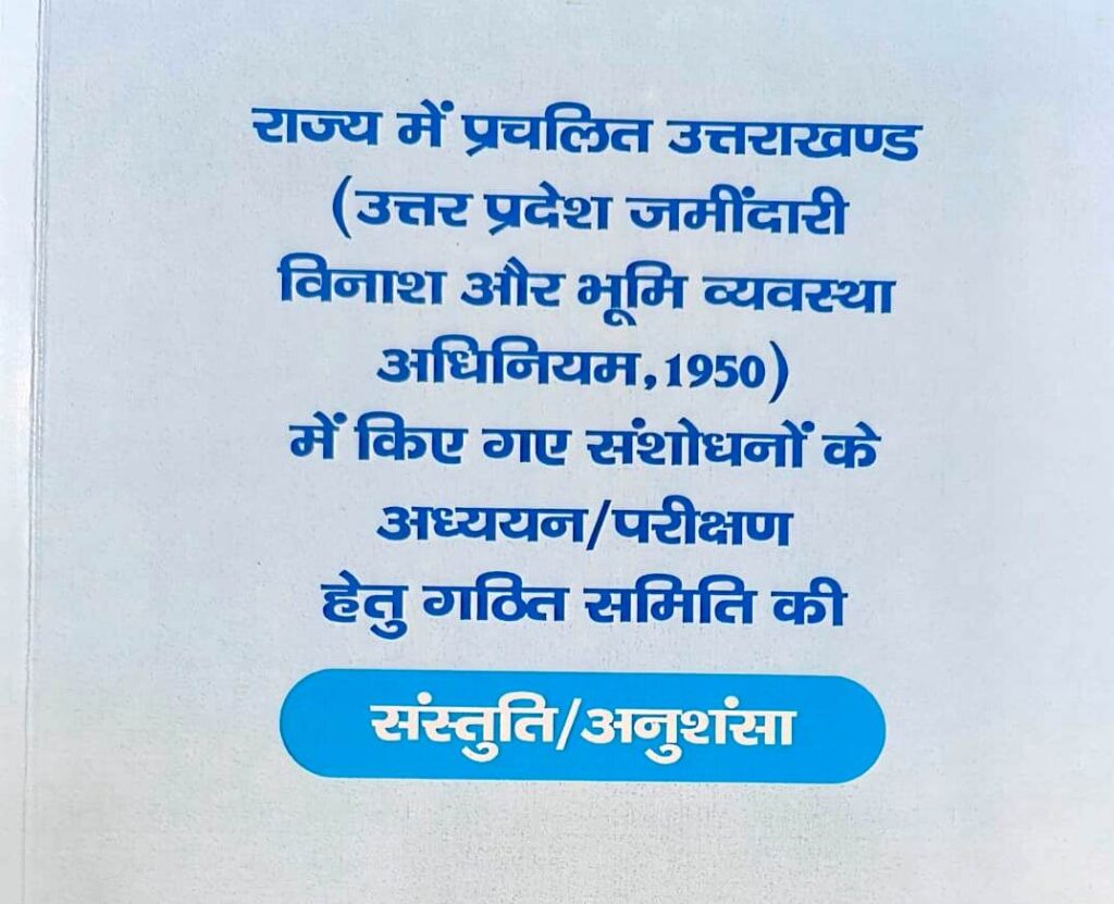 समिति ने वर्तमान में प्रदेश में प्रचलित उत्तराखंड (उत्तर प्रदेश जमींदारी विनाश एवं भूमि व्यवस्था अधिनियम, 1950) यथा संशोधित और यथा प्रवृत्त में जन भावनाओं के अनुरूप हिमाचल प्रदेश की तरह कतिपय प्रावधानों की संस्तुति की है।