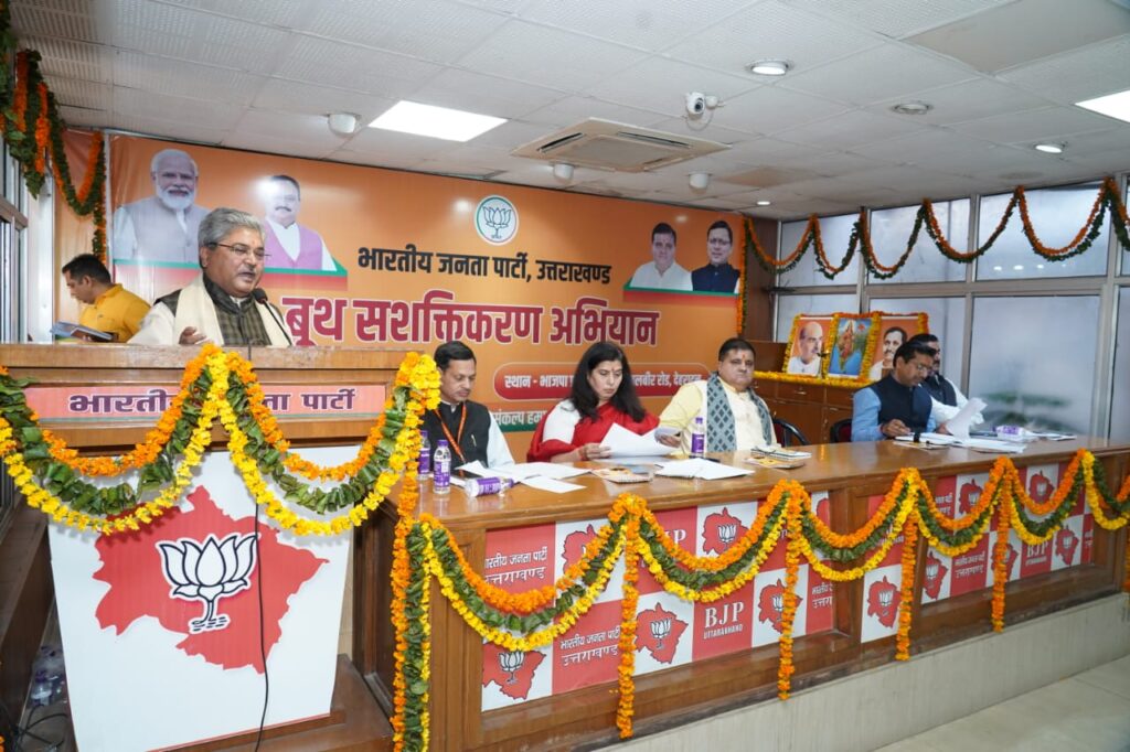 प्रदेश अध्यक्ष महेन्द्र भट्ट ने बूथ सशक्तिकरण अभियान की चर्चा करते हुए कहा कि इस तरह के अभियान सांगठनिक प्रभाव को बढ़ाने के सबसे बड़े कारण होते है। उन्होंने कहा कि भाजपा सबसे बड़े संगठन के रूप में स्थापित हों और बूथ के माध्यम से हम अपने संगठन को गांव-गांव तक प्रभावी बनाने का प्रयास कर रहे हैं। उन्होंने जानकारी देते हुए बताया कि चम्पावत जैसे जनपद में 94 प्रतिशत बूथ प्रबंधन किया जा चुका है, ऐसे में हमें स्थानीय निकायों, केन्द्र व राज्य के कामों के साथ-साथ बजट पर गांव-गांव तक चर्चा करनी चाहिए।
