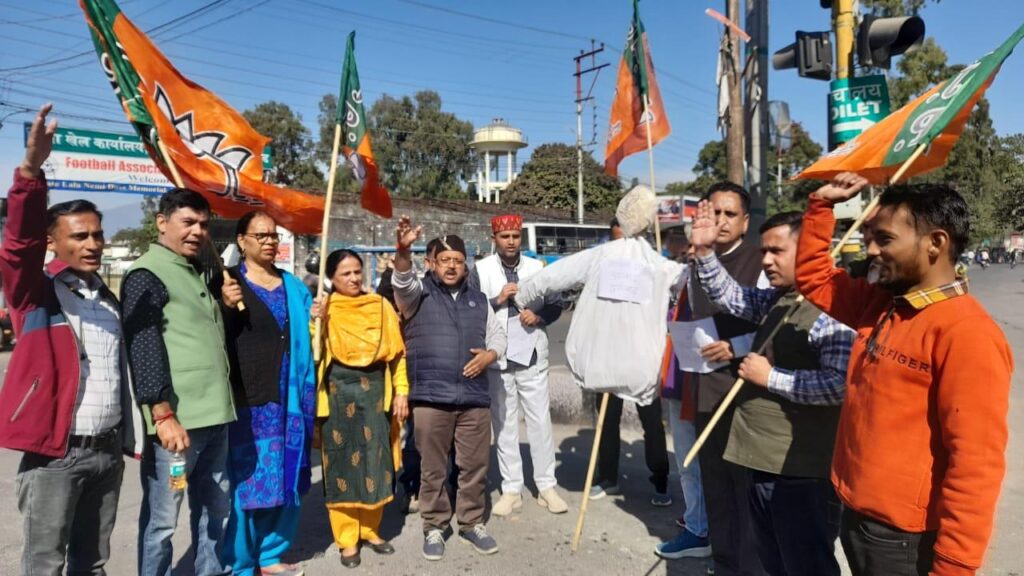 देहरादून। पश्चिम बंगाल में ममता बनर्जी की सरकार में मंत्री और तृणमूल कांग्रेस के नेता अखिल गिरि द्वारा राष्ट्रपति द्रौपदी मुर्मू के रंग-रूप पर कथित आपत्तिजनक टिप्पणी का विवाद बढ़ते जा रहा है। भाजपा सहित सभी राजनीतिक दलों ने गिरी की टिप्पणी को अपमानजनक बताया है। भाजपा जनजाति प्रदेश मोर्चा ने नंदीग्राम में पश्चिम बंगाल मंत्री और टीएमसी नेता अखिल गिरि द्वारा राष्ट्रपति द्रौपदी मुर्मू पर अपमानजनक टिप्पणी के खिलाफ आज भाजपा महानगर कार्यालय के पास अखिल गिरी का पुतला फूंका। जनजाति मोर्चा के प्रदेश मीडिया प्रभारी सत्यवीर सिंह चौहान ने बताया कि प्रदेश भर में जनजाति मोर्चा की तरफ से जगह जगह पर ममता बनर्जी सरकार के मंत्री का पुतला दहन किया गया।