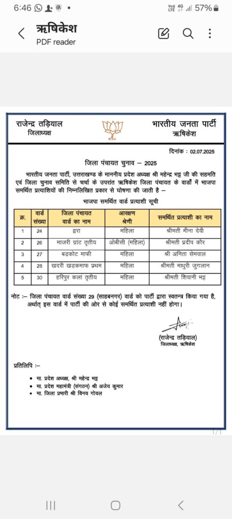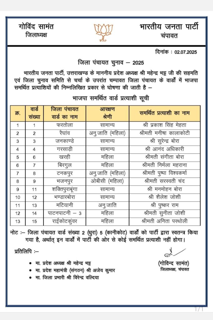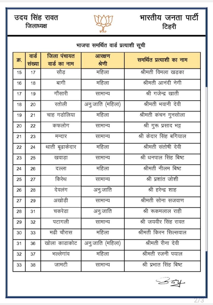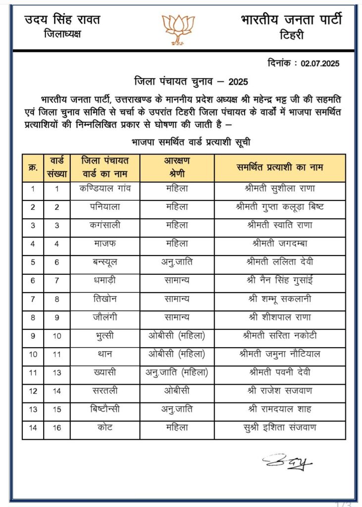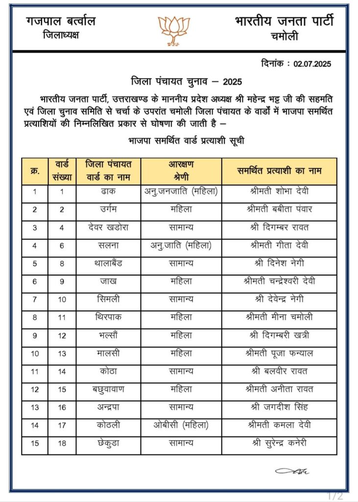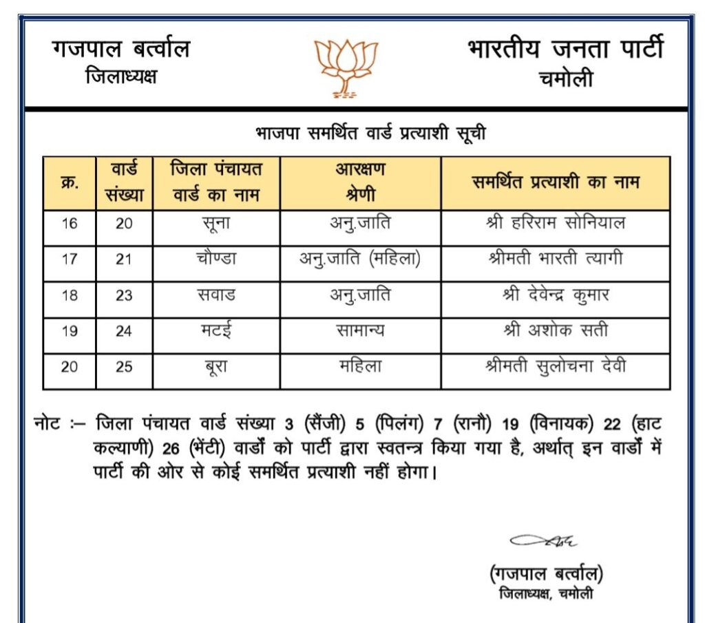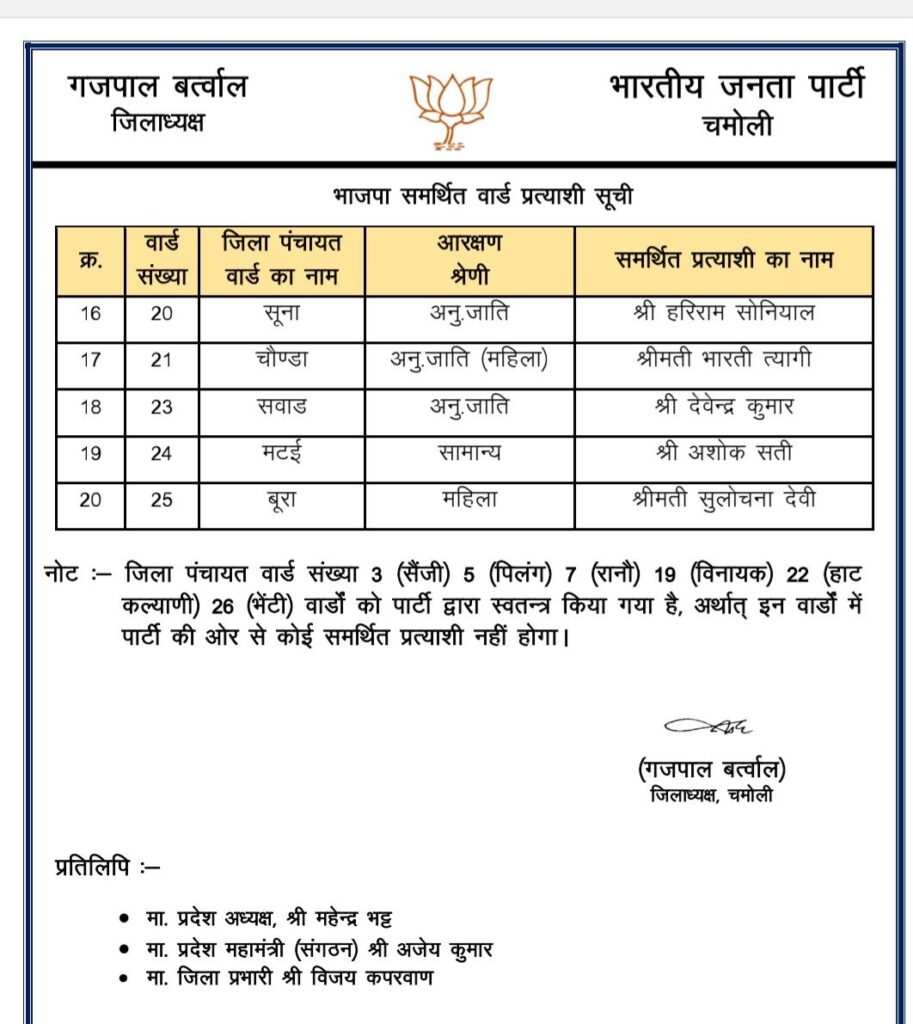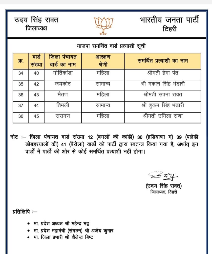 राजनैतिक समीक्षा भाजपा ने पंचायत चुनाव में समर्थित प्रत्याशियों की सूची जारी की India Review July 3, 2025 About Post Author India Review See author's posts Tags: bjp released list of panchayt chunaav Continue Reading Previous: भाजपा प्रदेश अध्यक्ष चुनाव की अधिसूचना जारी,Next: भाजपा परिवार ने अपने प्रेरणास्रोत डा. मुखर्जी को उनकी जयंती पर किया याद Leave a Reply Cancel replyYour email address will not be published. Required fields are marked *Comment * Name * Email * Website Save my name, email, and website in this browser for the next time I comment. Related Stories माणा गाँव में देवभूमि सांस्कृतिक महोत्सव का भव्य समापन राजनैतिक समीक्षा माणा गाँव में देवभूमि सांस्कृतिक महोत्सव का भव्य समापन October 27, 2025 पिछले तीन साल में 23 करोड़ से अधिक पर्यटक पहुंचे उत्तराखं राजनैतिक समीक्षा पिछले तीन साल में 23 करोड़ से अधिक पर्यटक पहुंचे उत्तराखं October 27, 2025 धामी सरकार के चार वर्ष : उपलब्धियाँ और विकास की दिशा* राजनैतिक समीक्षा धामी सरकार के चार वर्ष : उपलब्धियाँ और विकास की दिशा* October 26, 2025