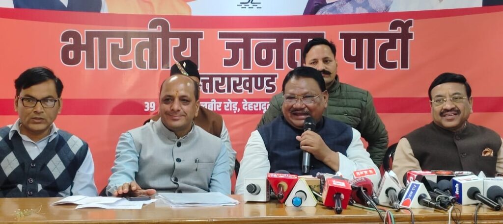पत्रकार वार्ता में प्रदेश चुनाव अधिकारी खजान दास, प्रदेश कोषाध्यक्ष पुनीत मित्तल, प्रदेश मीडिया प्रभारी मनवीर चौहान, श्री अनिल गोयल, सह मीडिया प्रभारी राजेंद्र नेगी, मानिक निधि शर्मा, महानगर अध्यक्ष सिद्धार्थ अग्रवाल, गीताराम नौटियाल समेत बड़ी संख्या कार्यकर्ता भी मौजूद रहे।