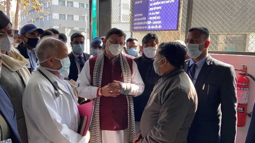 हल्द्वानी । चुनाव अधिसूचना जारी होने के बाद मुख्यमंत्री पुष्कर धामी के निजी दौरे से हल्द्वानी पहुंचे। उन्होंने कोरोना की गाइड लाइन के बीच आम जनता के स्वास्थ्य व सुरक्षा के दृष्टिगत आवश्यक जानकारी भी ली। निजी दौरे पर आए मुख्यमंत्री पुष्कर सिंह धामी ने इसी क्रम में कोरोना के बढ़ते मामलों के मद्देनजर हल्द्वानी के सुशीला तिवारी हॉस्पिटल में मरीज़ों से अस्पताल की व्यवस्थाओं की जानकारी लेने के साथ मरीज़ों के तिमारदारों से भी बात की |उन्होने वहाँ मौजूद लोगों से कोरोना व अन्य स्वास्थ्य सुविधाओं और दवाइयों की उपलब्धता के बारे में भी जानकारी हासिल की । मुख्यमंत्री धामी ने जन औषद्धि केंद्र का निरीक्षण कर जनता को सस्ते दामों में मिल रही दवाइयों की जानकारी भी ली। सुशीला तिवारी हॉस्पिटल के मुख्य चिकित्सा अधिकारी ने मुख्यमंत्री जी को जनपद स्तर पर चल रही स्वास्थ्य सेवाओ की जानकारी भी दी। उन्होने कोविड के खतरों को लेकर आम जनता के स्वास्थ्य सुविधाओं की और विशेष ध्यान देने को भी कहा।