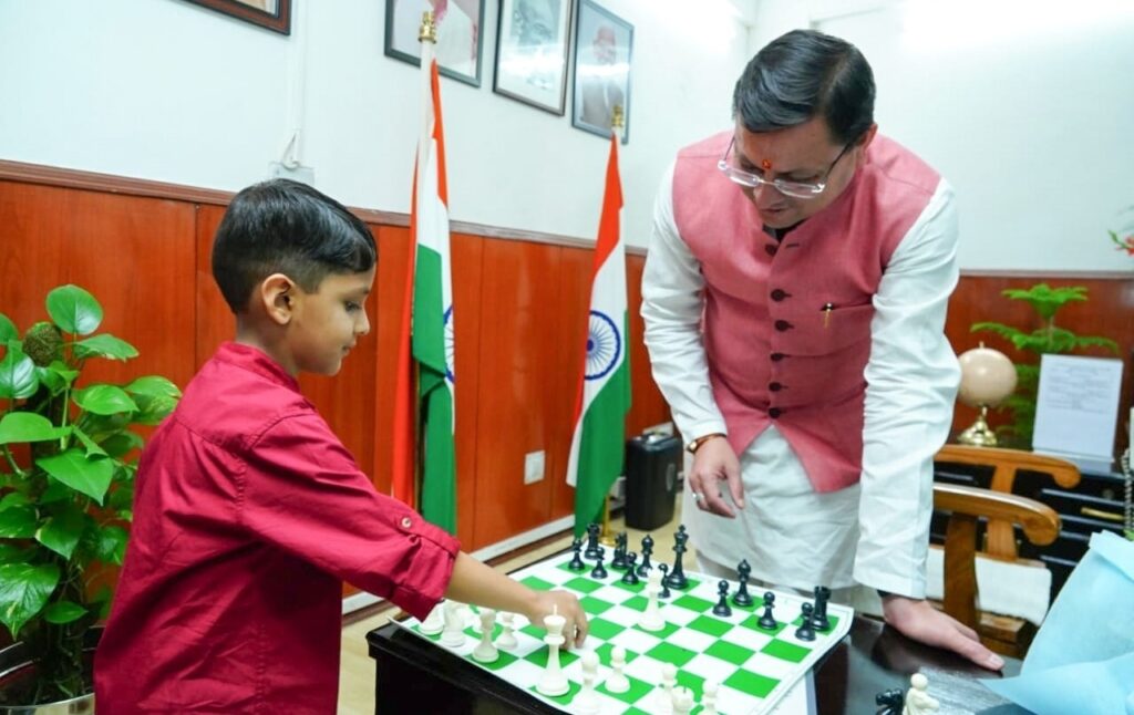 देहरादून, मुख्यमंत्री पुष्कर सिंह धामी से सचिवालय में हल्द्वानी निवासी सबसे कम उम्र के शतरंज खिलाड़ी श्री तेजस तिवारी ने भेंट की। मुख्यमंत्री ने तेजस को भविष्य में शतरंज़ के क्षेत्र में नए कीर्तिमान स्थापित करने एवं उज्ज्वल भविष्य की अनंत शुभकामनाएं देते हुए कहा कि आज उत्तराखण्ड विभिन्न खेलों में देश का प्रतिनिधित्व कर रहा है, जो हम सभी के लिए गर्व का विषय है।