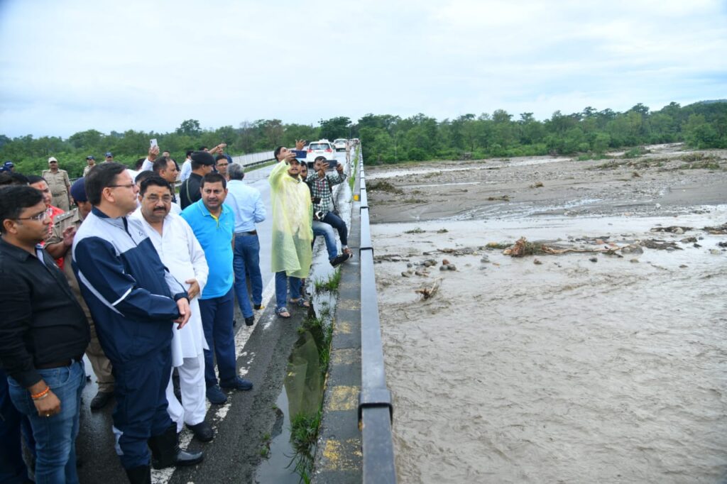 देहरादून । मुख्यमंत्री पुष्कर सिंह धामी आपदा प्रभावित क्षेत्रों का स्थलीय निरीक्षण कर रहे हैं। थानों मार्ग पर क्षतिग्रस्त पुल का निरीक्षण करते हुए मुख्यमंत्री ने अधिकारियों को निर्देश दिए कि आवागमन को सुचारू करने के लिए शीघ्र वैकल्पिक व्यवस्था की जाए।