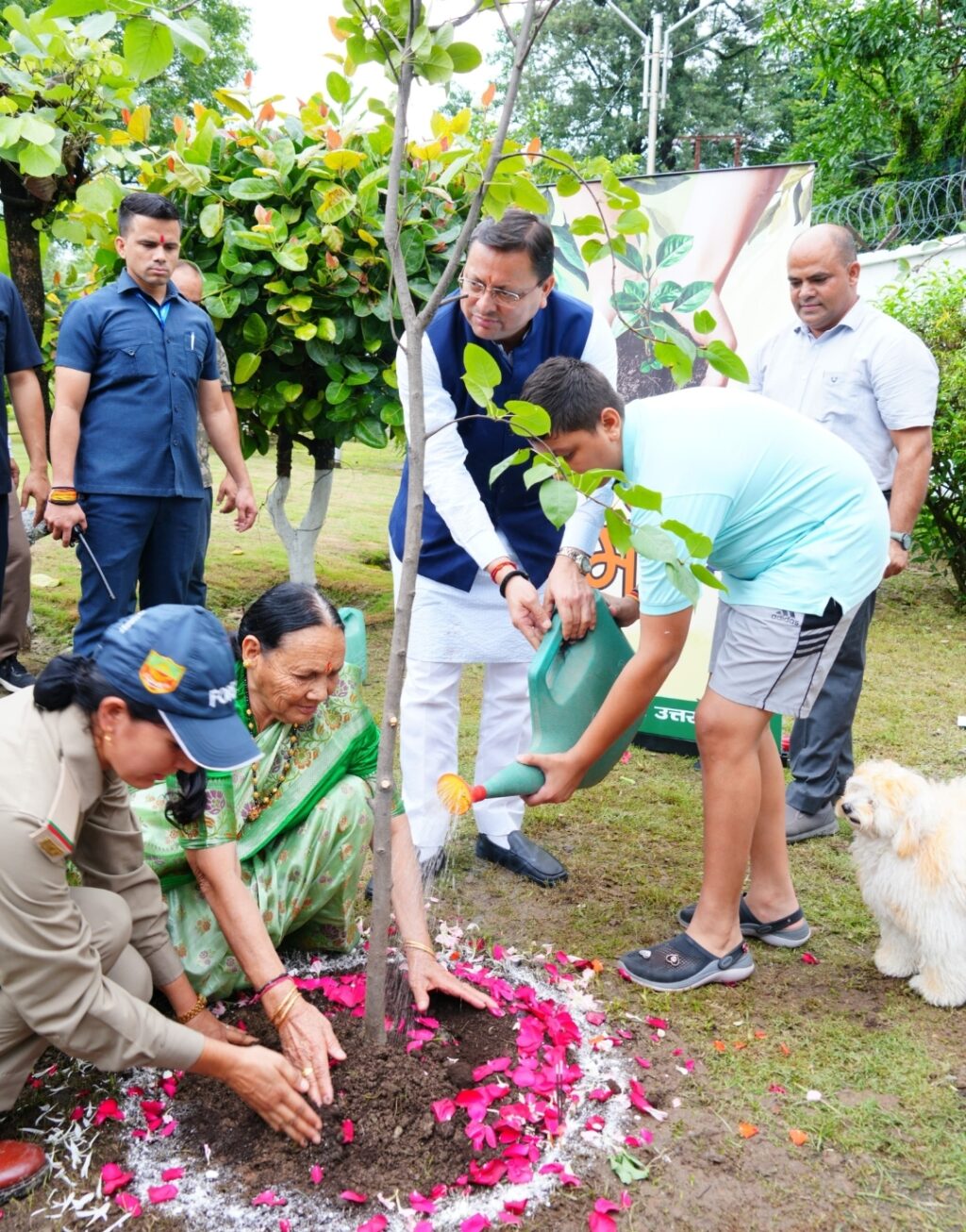 देहरादून। मुख्यमंत्री पुष्कर सिंह धामी ने एक पेड़ मां के नाम अभियान के तहत अपनी माताजी श्रीमती बिशना देवी के साथ पौधारोपण किया। मुख्यमंत्री के सुपुत्र दिवाकर ने भी इस अवसर पर पौधा लगाया। इस पहल का उद्देश्य प्रत्येक व्यक्ति को अपनी माँ के सम्मान में एक पेड़ लगाने के लिए प्रेरित करना है, ताकि भावनात्मक जुड़ाव के माध्यम से पर्यावरण संरक्षण को जन-आंदोलन बनाया जा सके।