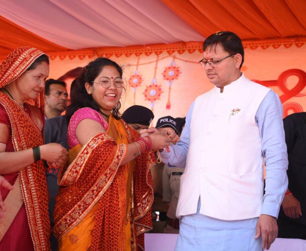 देहरादून । मुख्यमंत्री पुष्कर सिंह धामी ने गोरलचौड़ मैदान, चंपावत में आयोजित रक्षाबंधन कार्यक्रम में प्रतिभाग किया। इस अवसर पर बड़ी संख्या में आयी महिलाओं ने मुख्यमंत्री को राखी बांधी एवं उनके दीर्घ जीवन की कामना की।