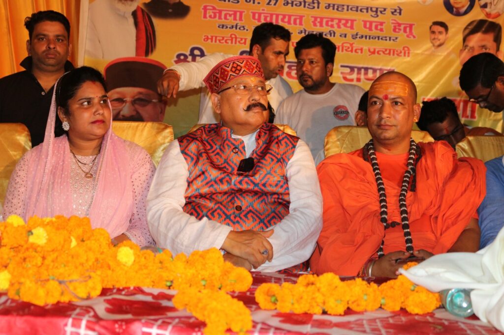 उत्तराखण्ड के कैबिनेट मंत्री और जनपद के प्रभारी मंत्री सतपाल महाराज ने शनिवार को जनपद में हो रहे त्रिस्तरीय पंचायत चुनाव में भगेडी महावतपुर से भारतीय जनता पार्टी के जिला पंचायत प्रत्याशी श्रीमती महक राणा के समर्थन में आयोजित एक चुनावी सभा को सम्बोधित करते हुए जहाँ पंचायत चुनाव में भाजपा प्रत्याशियों को विजयी बनाने की मतदाताओं से अपील की वहीं उन्होने राज्य एवं केंद्र की भाजपा सरकारों द्वारा पंचायतों को सशक्त करने के लिए किये जा रहे कार्यों की भी जानकारी दी।