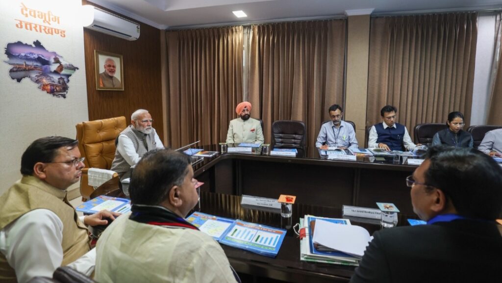 देहरादून। उत्तराखंड में प्राकृतिक आपदा से हुए नुकसान का जायजा लेने पहुंचे प्रधानमंत्री नरेंद्र मोदी ने गुरुवार को जौलीग्रांट एअरपोर्ट पर आपदा राहत कार्यों की गहन समीक्षा की। प्रधानमंत्री ने इस दौरान अलग-अलग क्षेत्रों में आपदा से हुए नुकसान का विस्तार से जानकारी लेने के साथ ही राहत एवं बचाव कार्यों की ताजा स्थिति और भविष्य की चुनौतियों पर राज्यपाल ले.ज. गुरमीत सिंह (से.नि.), मुख्यमंत्री श्री पुष्कर सिंह धामी, केन्द्रीय राज्य मंत्री अजय टम्टा तथा राज्य के सांसदों सहित वरिष्ठ अधिकारियों के साथ विचार-विमर्श किया। प्रधानमंत्री नरेंद्र मोदी ने धराली, थराली सहित राज्य के आपदा प्रभावित अन्य क्षेत्रों में संचालित राहत एवं बचाव अभियानों में एनडीआरएफ, एसडीआरएफ सहित राज्य सरकार के विभिन्न विभागों के प्रयासों की सराहना की और राहत बचाव कार्यों में जुटे राज्य व केन्द्र सरकार के संगठनों के कार्मिकों से भेंट कर उनके अनुभव साझा किए। प्रधानमंत्री ने आपदा पीड़ितों से भी मुलाकात कर उनका ढांढस बंधाने के साथ ही समुचित मदद का भरोसा दिलाया।